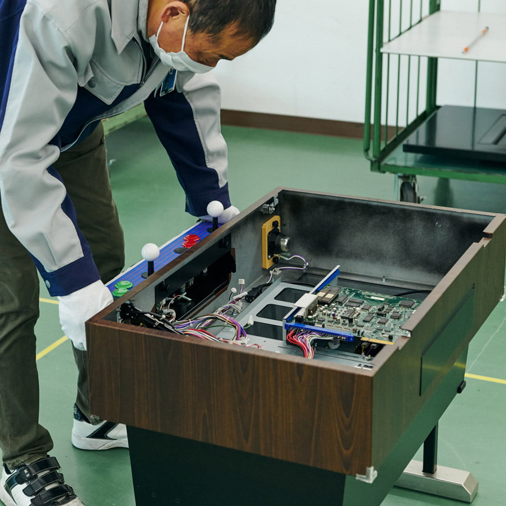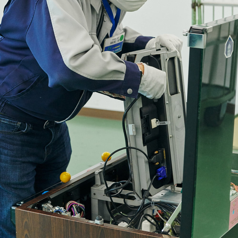中型から大型の業務用アミューズメント機器類の委託生産、部品集約から出荷まで生産が可能。